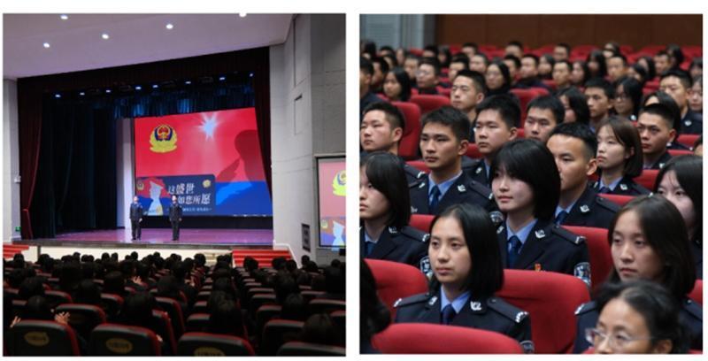 活动最后,全体人员起立,齐唱警歌。“伟大的祖国赋予我使命,复兴的民族给予我力量……”激昂的旋律在礼堂内回荡,更在每一位师生的心中激荡。在这一刻,我们更加从马金涛同志的事迹中理解了警歌所表达的思想,以及作为预备警官所肩负的时代使命。